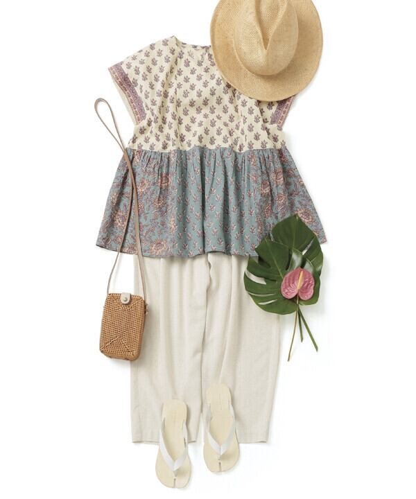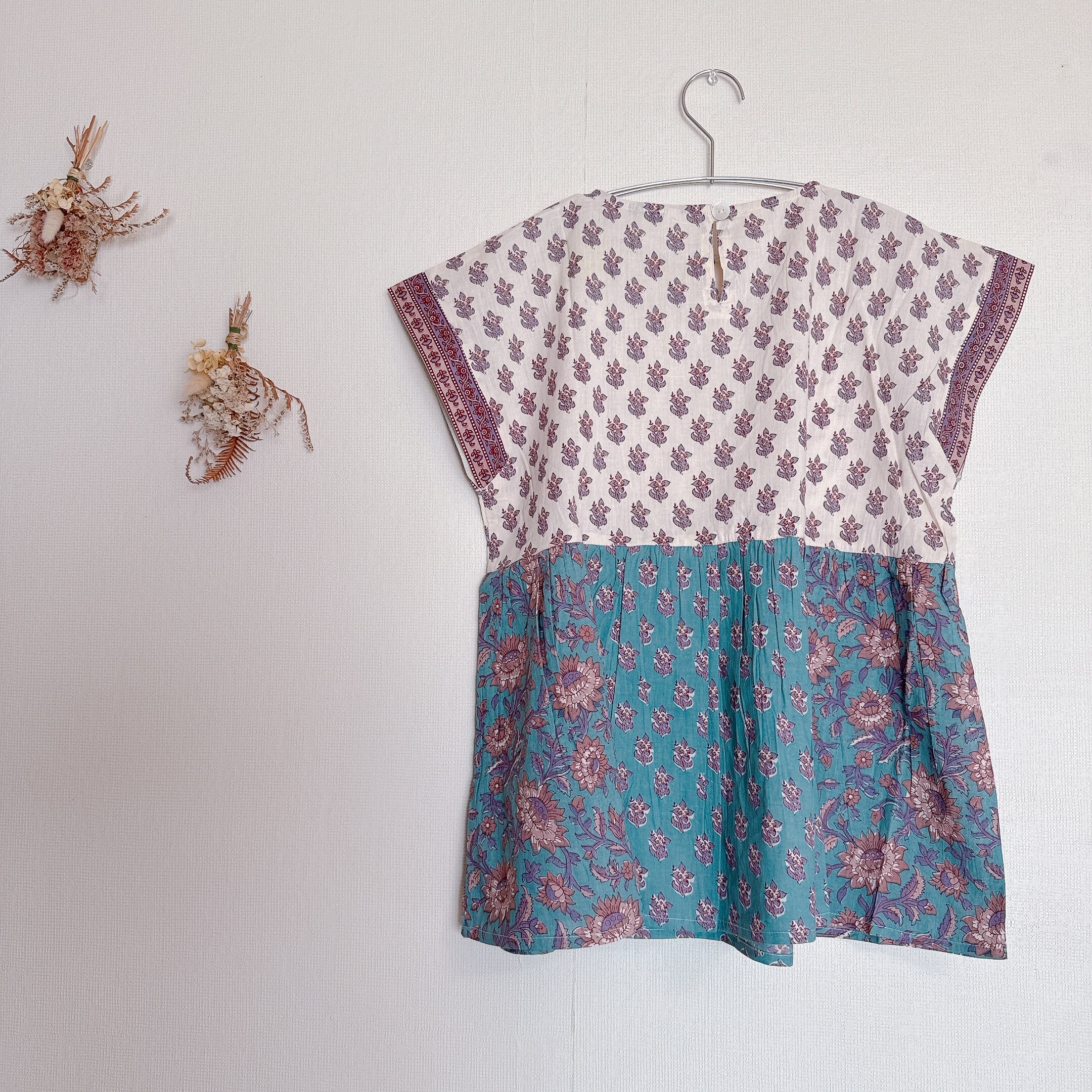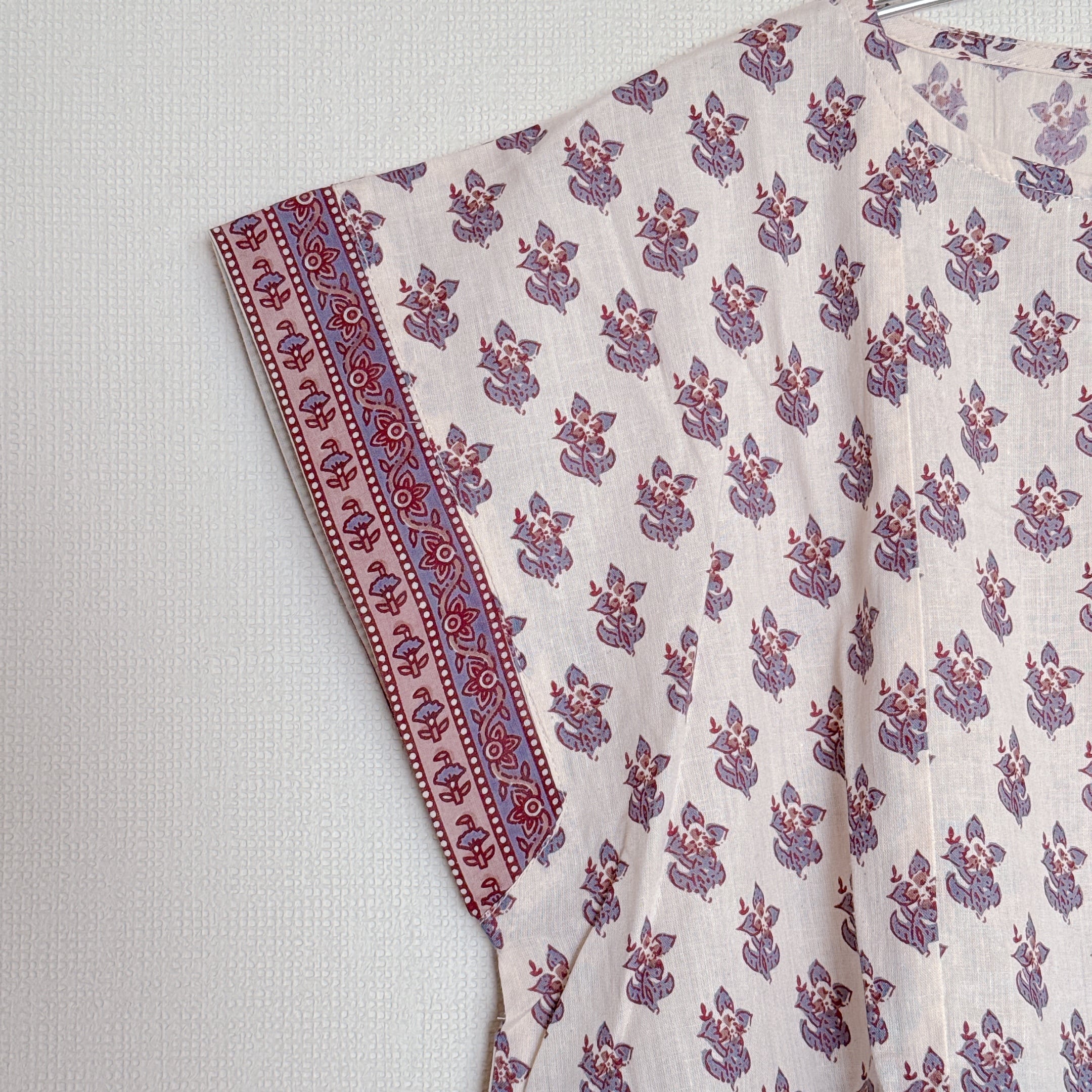 インド雑貨/インドの手仕事/インド好き/インド輸入/インドのブラウス/フラワープリント/ブロックプリントブラウス/トップス