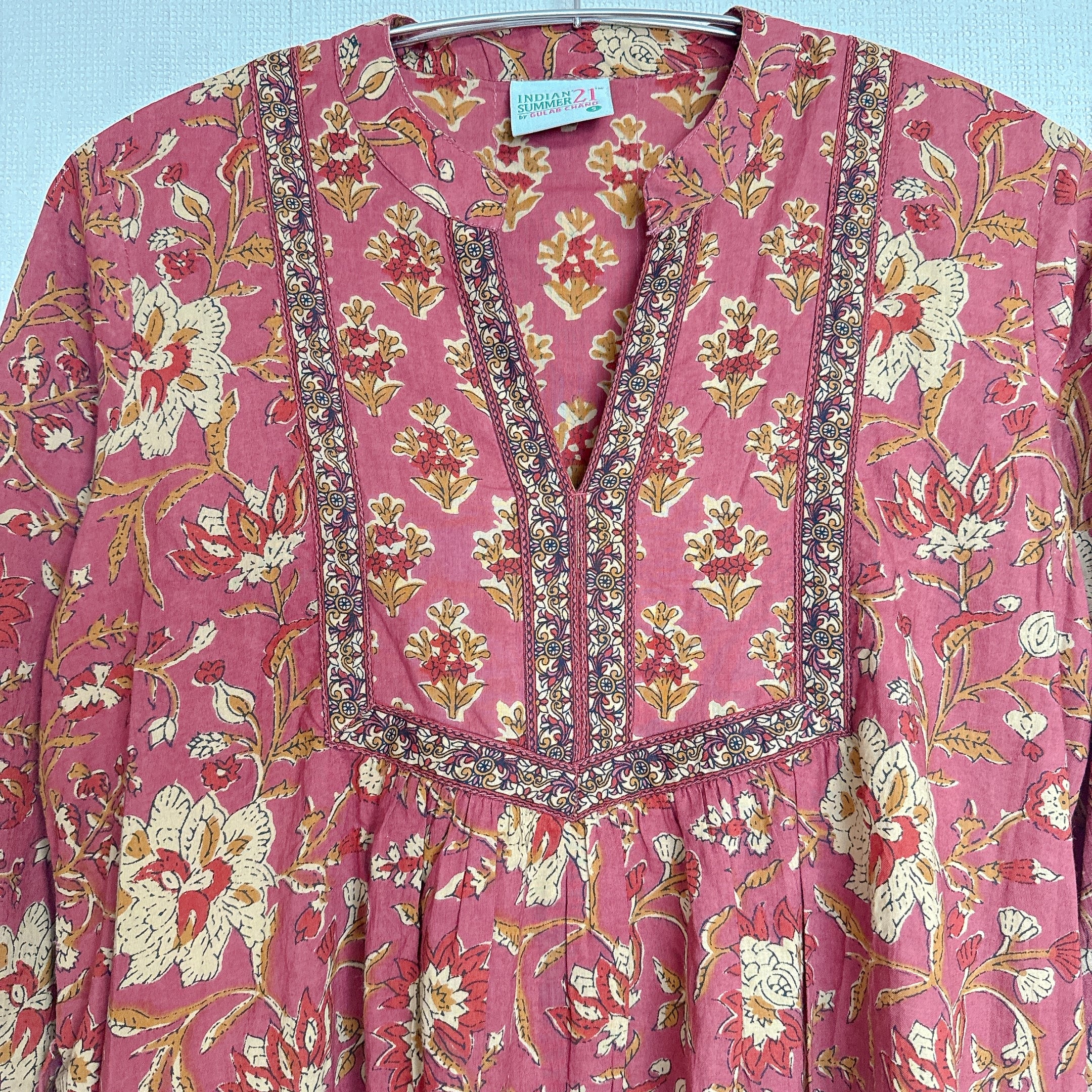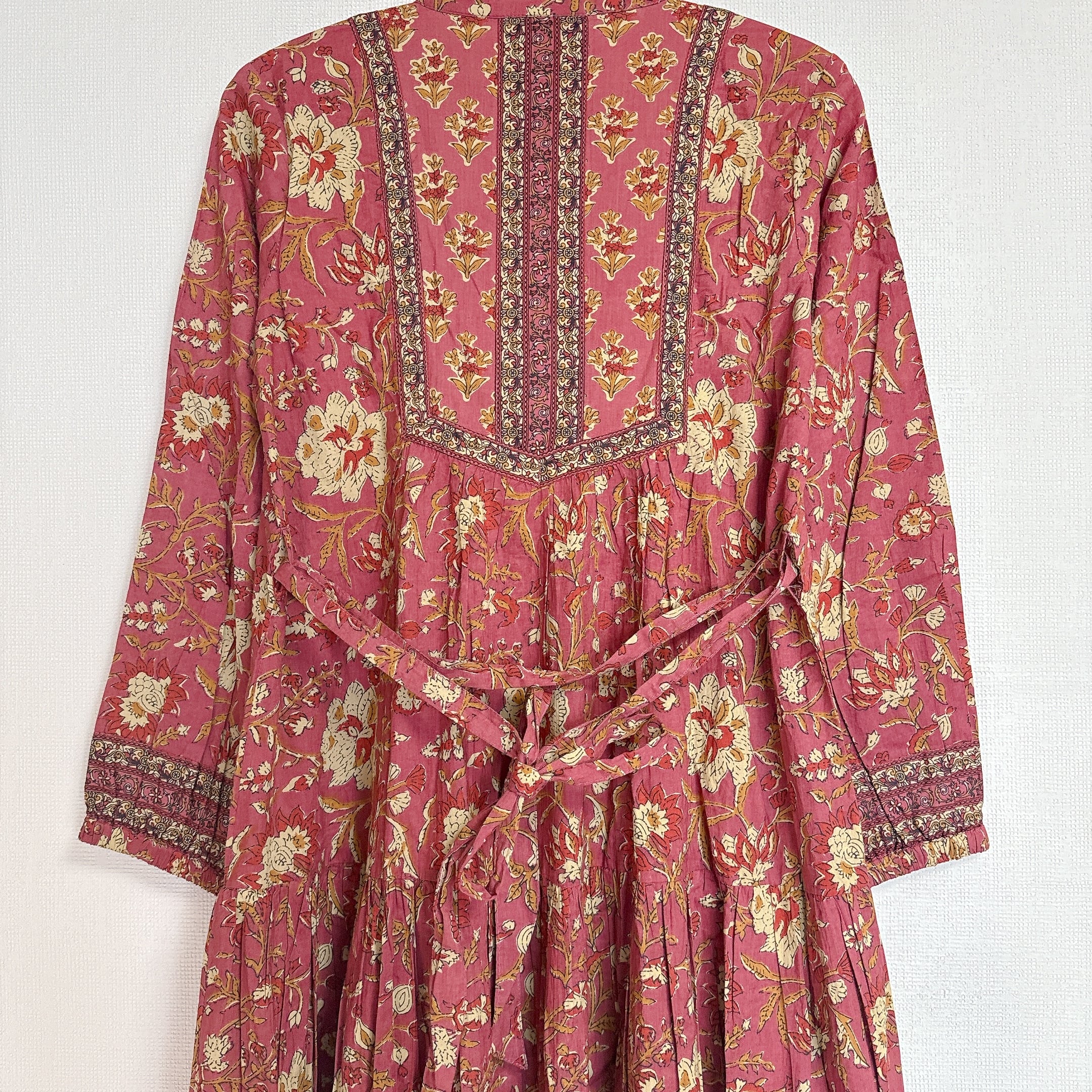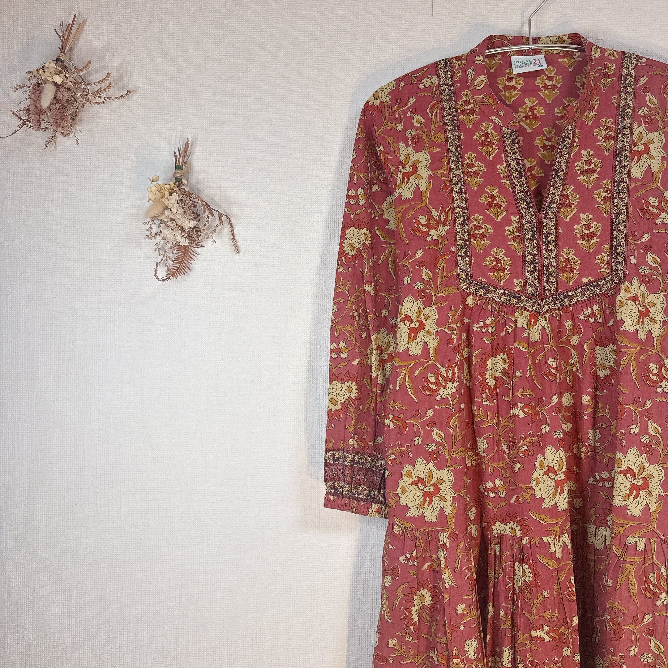 インド雑貨/インドの手仕事/インド好き/インド輸入/インドのワンピース/くすみレッド/花柄/ブロックプリントワンピース
