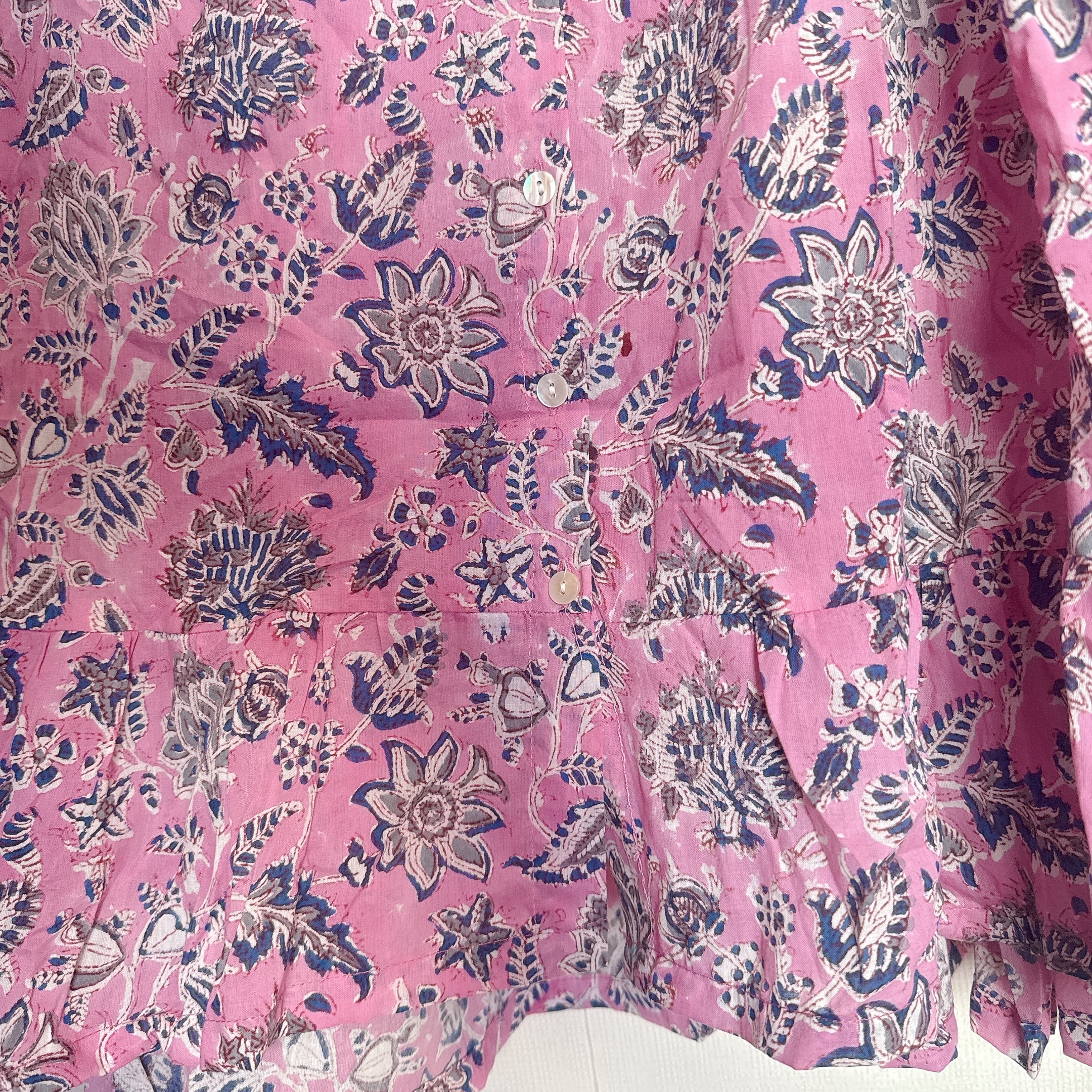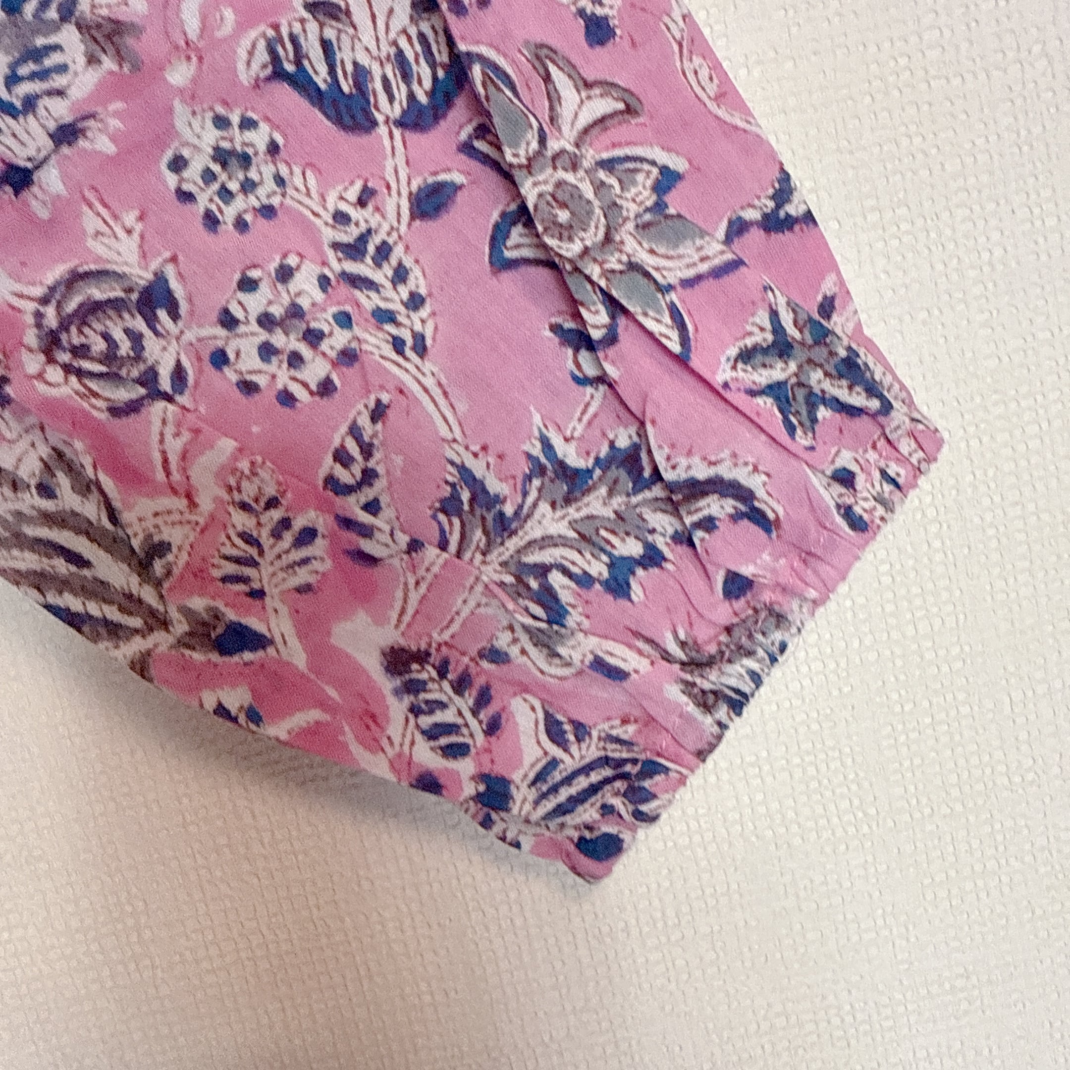 インド製のブロックプリントの為、インクのズレ・にじみがあったり、縫製時のマーキングが一部残っていたり、少々形が均一でない事もありますが、そこも一つの持ち味として楽しんでいただければ嬉しいです。