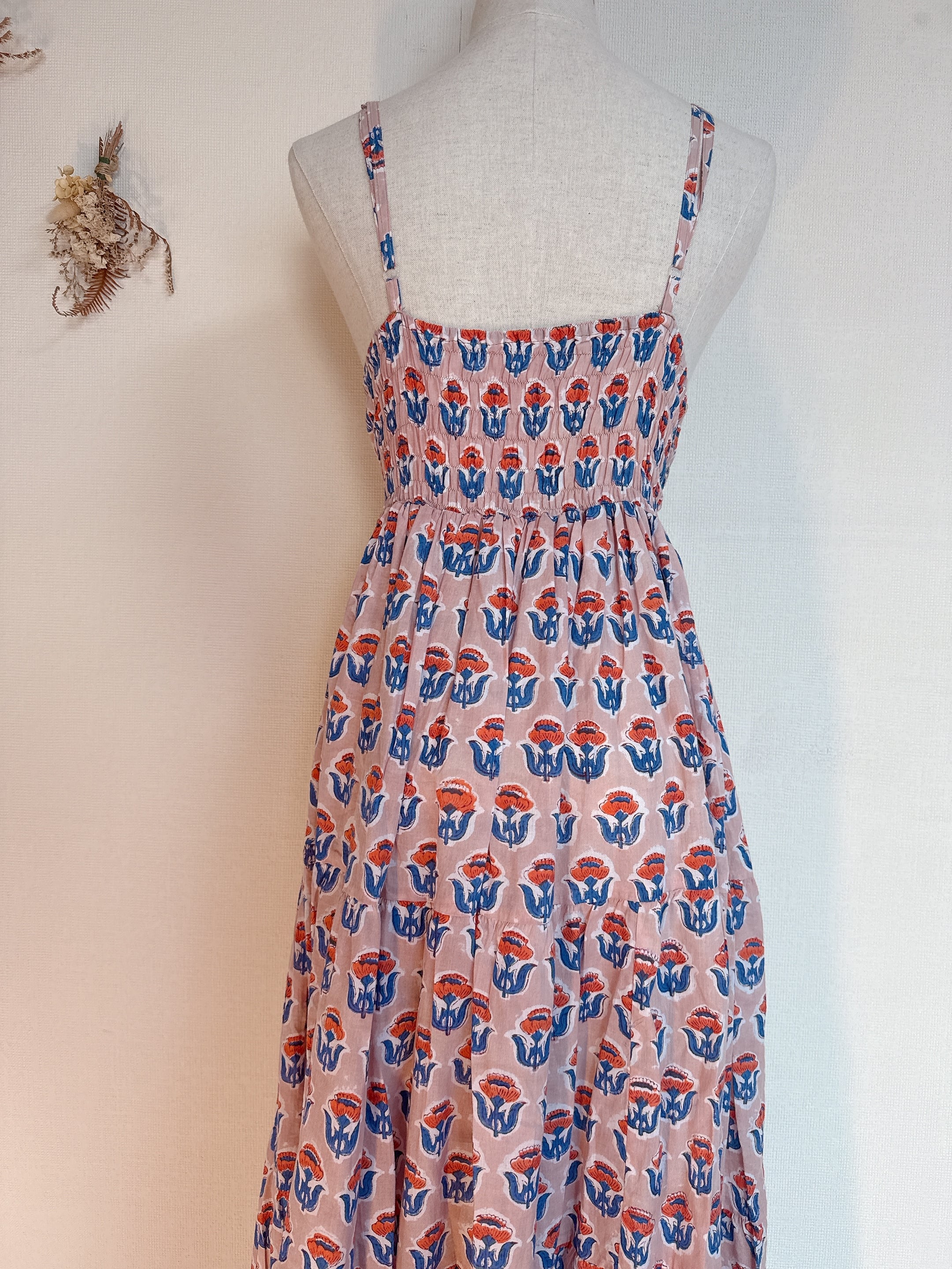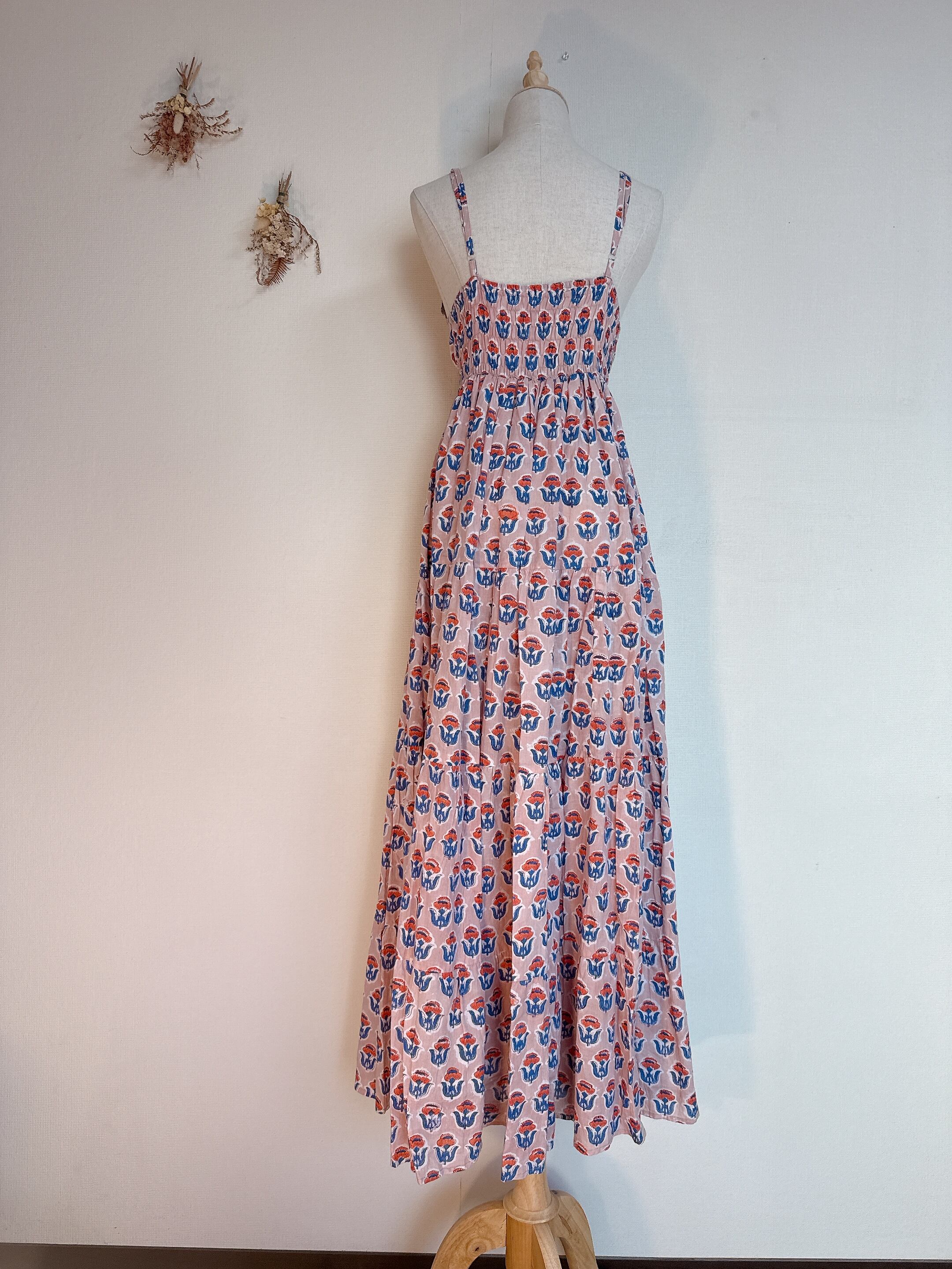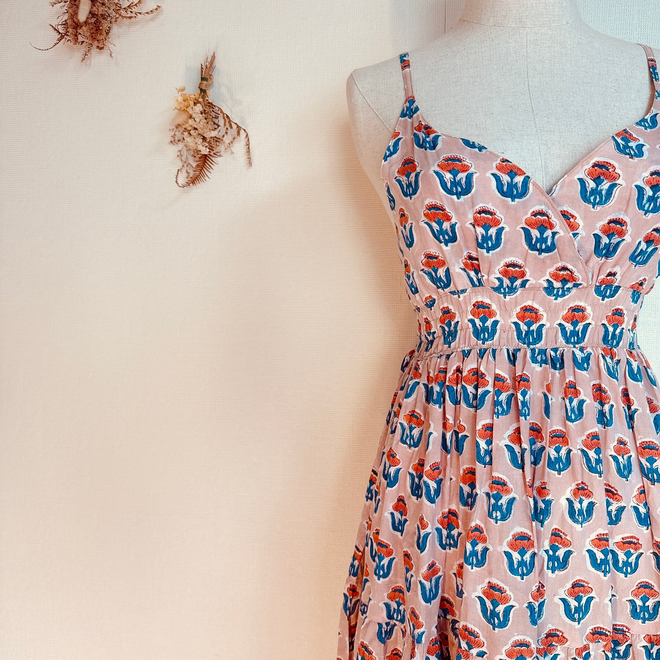 インド雑貨/インドの手仕事/インド好き/インド輸入/インドのワンピース/花柄/ブロックプリントワンピース