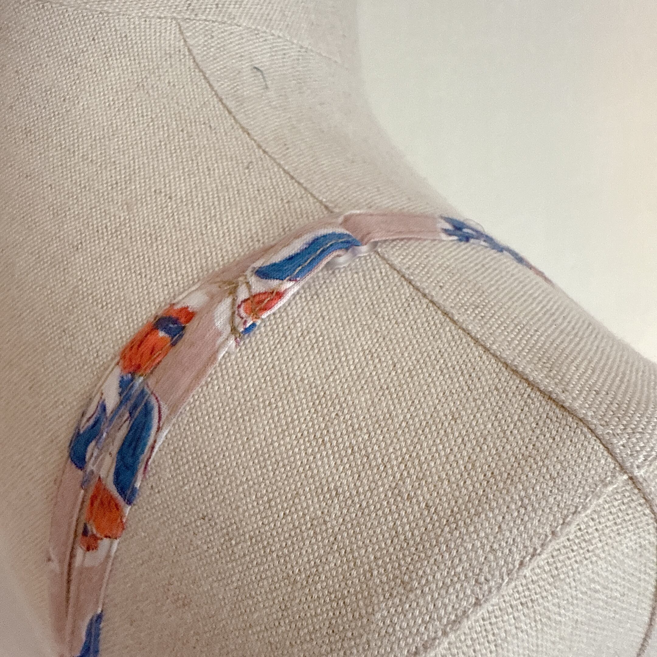 インド製のブロックプリントの為、インクのズレ・にじみがあったり、縫製時のマーキングが一部残っていたり、少々形が均一でない事もありますが、そこも一つの持ち味として楽しんでいただければ嬉しいです。