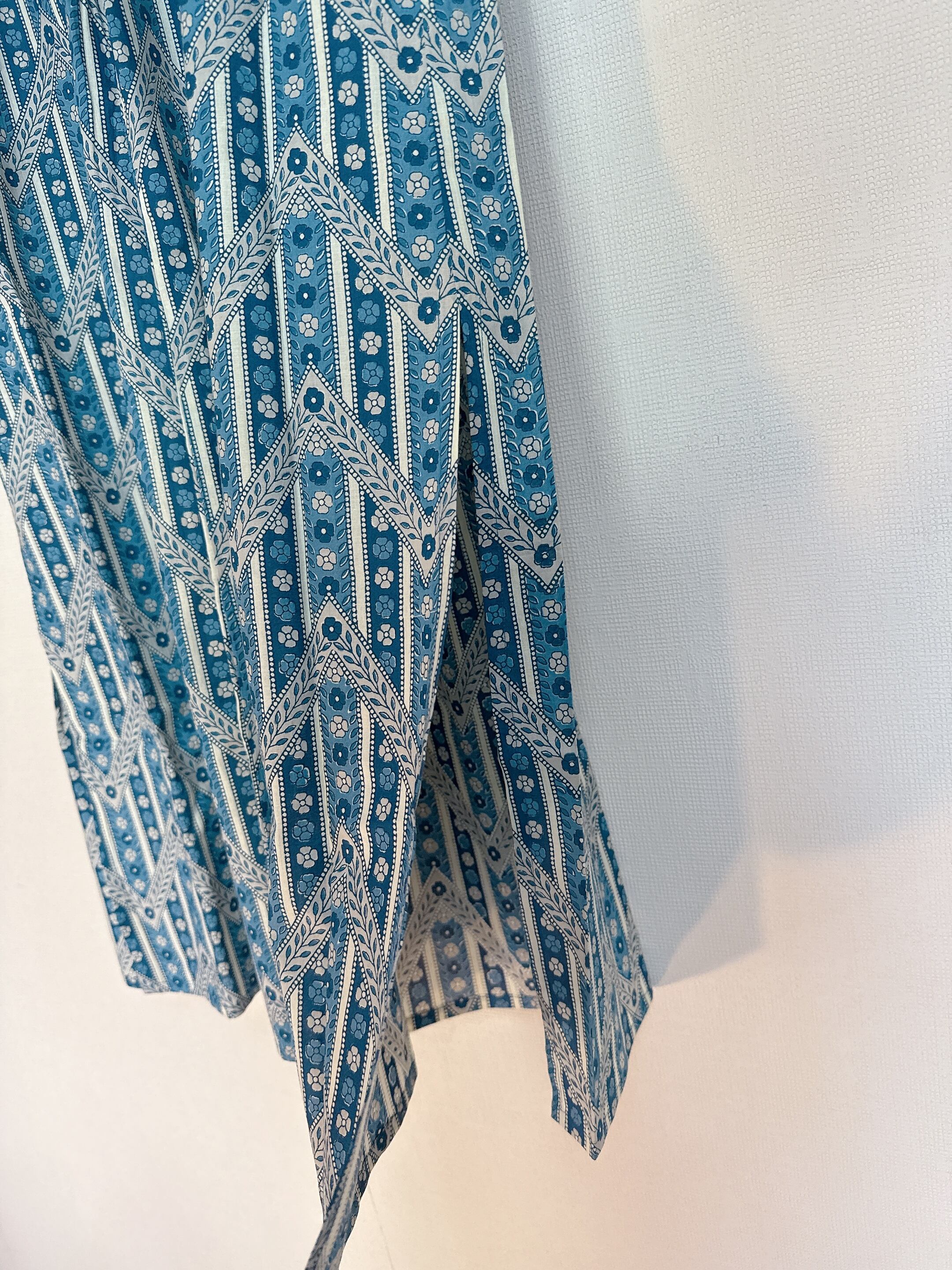 インド製のブロックプリントの為、インクのズレ・にじみがあったり、縫製時のマーキングが一部残っていたり、少々形が均一でない事もありますが、そこも一つの持ち味として楽しんでいただければ嬉しいです。