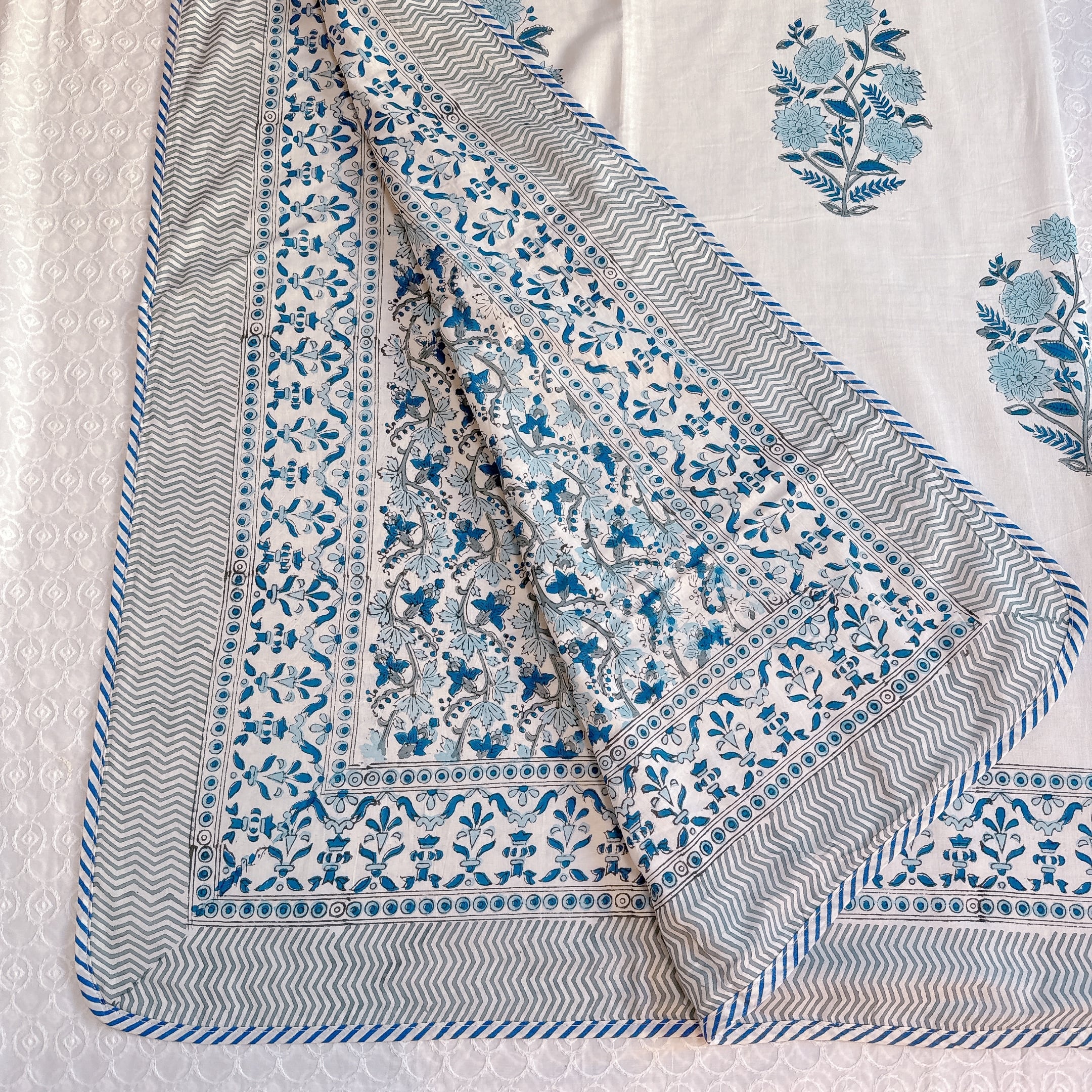 夏に一枚掛け、冬は羽毛布団の上に掛けて保温して、どんな季節もブロックプリントを楽しんでいただけます
