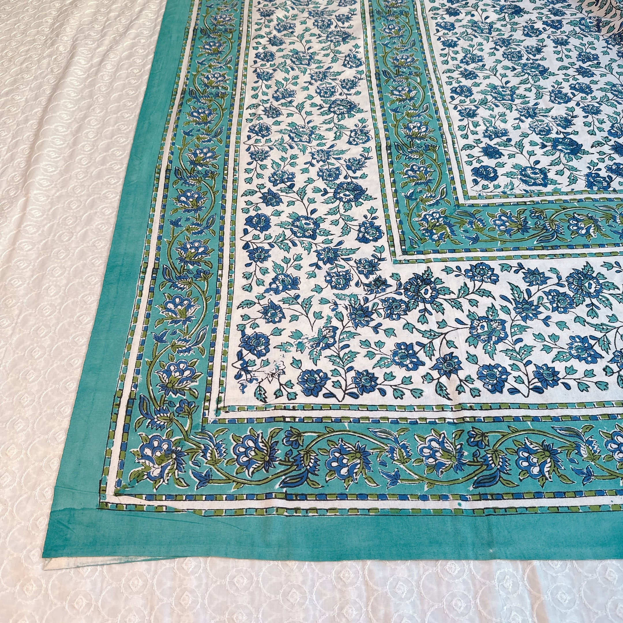 爽やかなグリーンxブルーカラーのベッドカバー