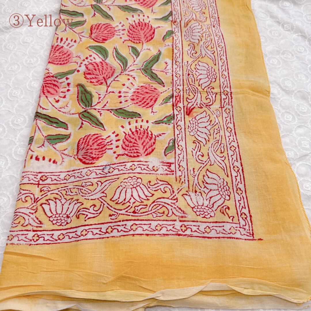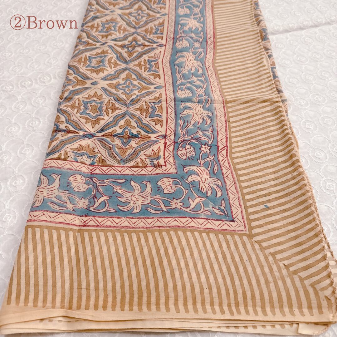 インド製のブロックプリントの為、インクのズレ・にじみがあったり、縫製時のマーキングが一部残っていたり、少々形が均一でない事もありますが、そこも一つの持ち味として楽しんでいただければ嬉しいです。