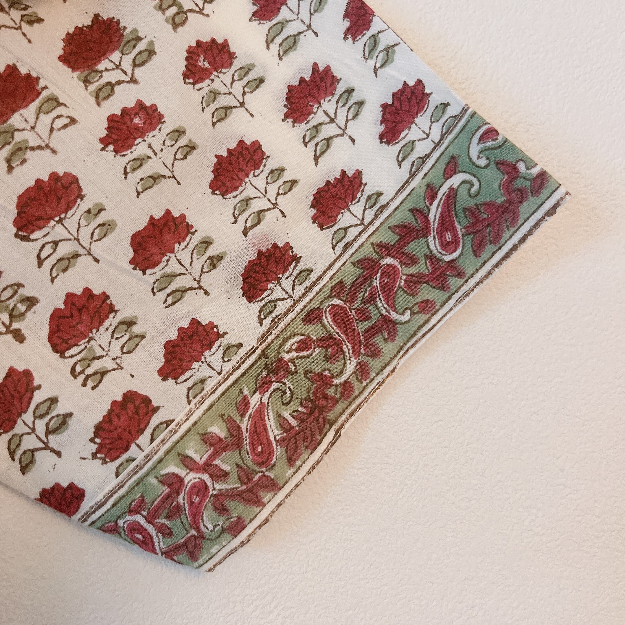 インド製のブロックプリントの為、少々形が均一でない事もありますが、そこも一つの持ち味として楽しんでいただければ嬉しいです。