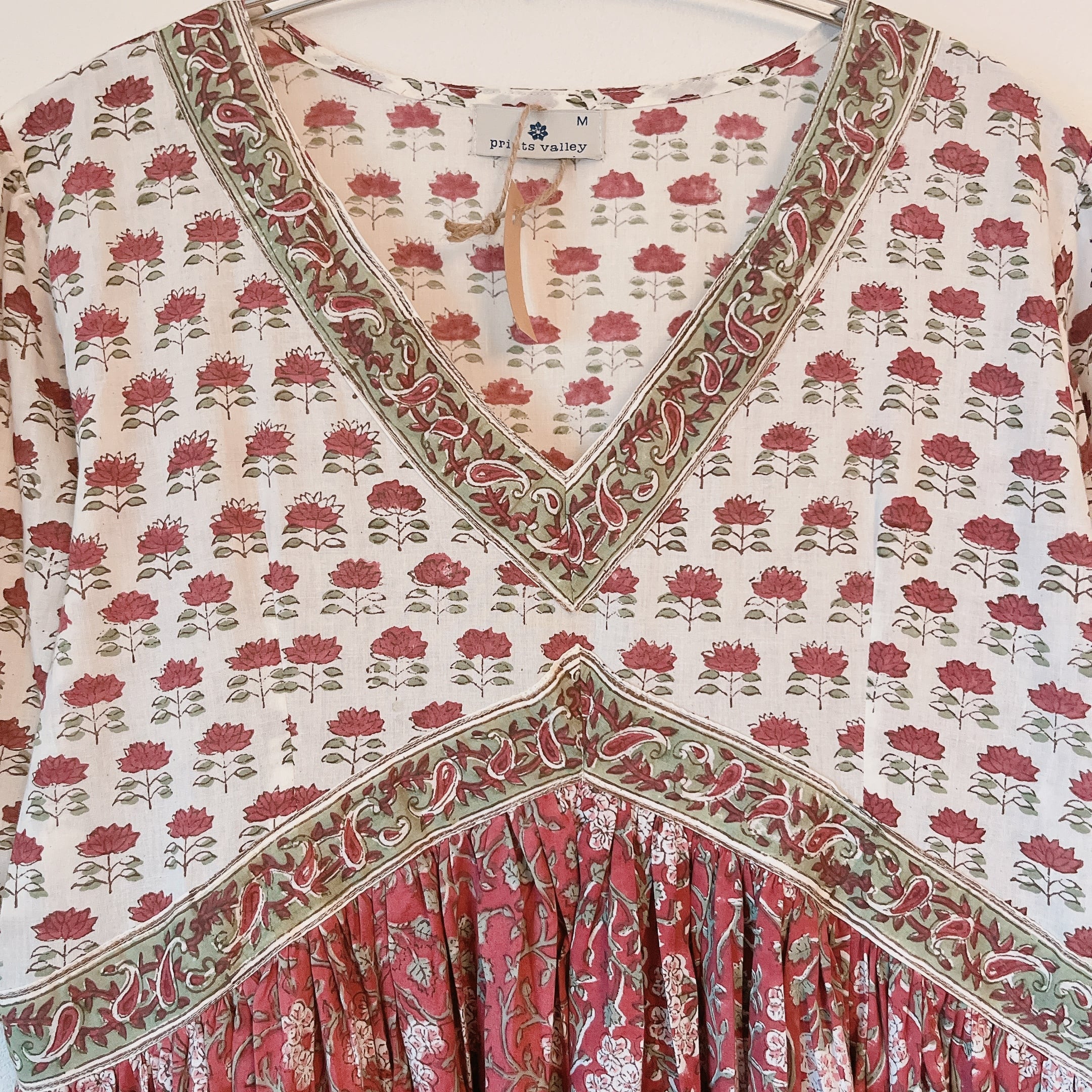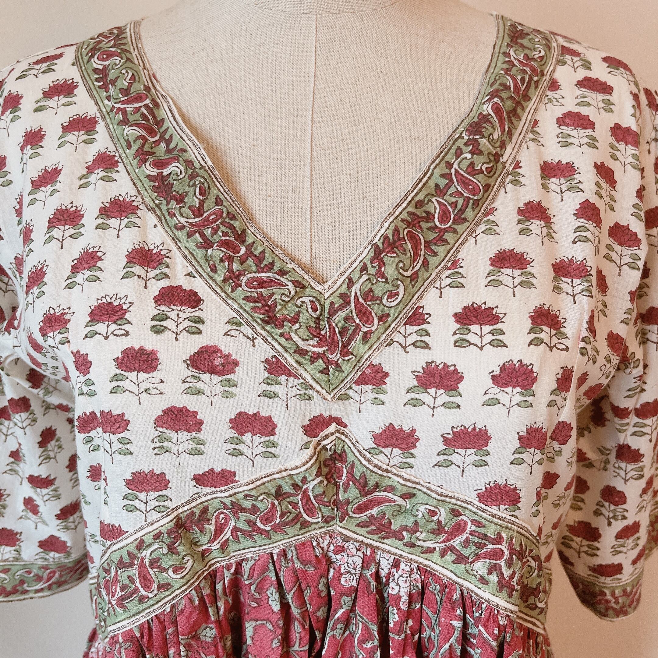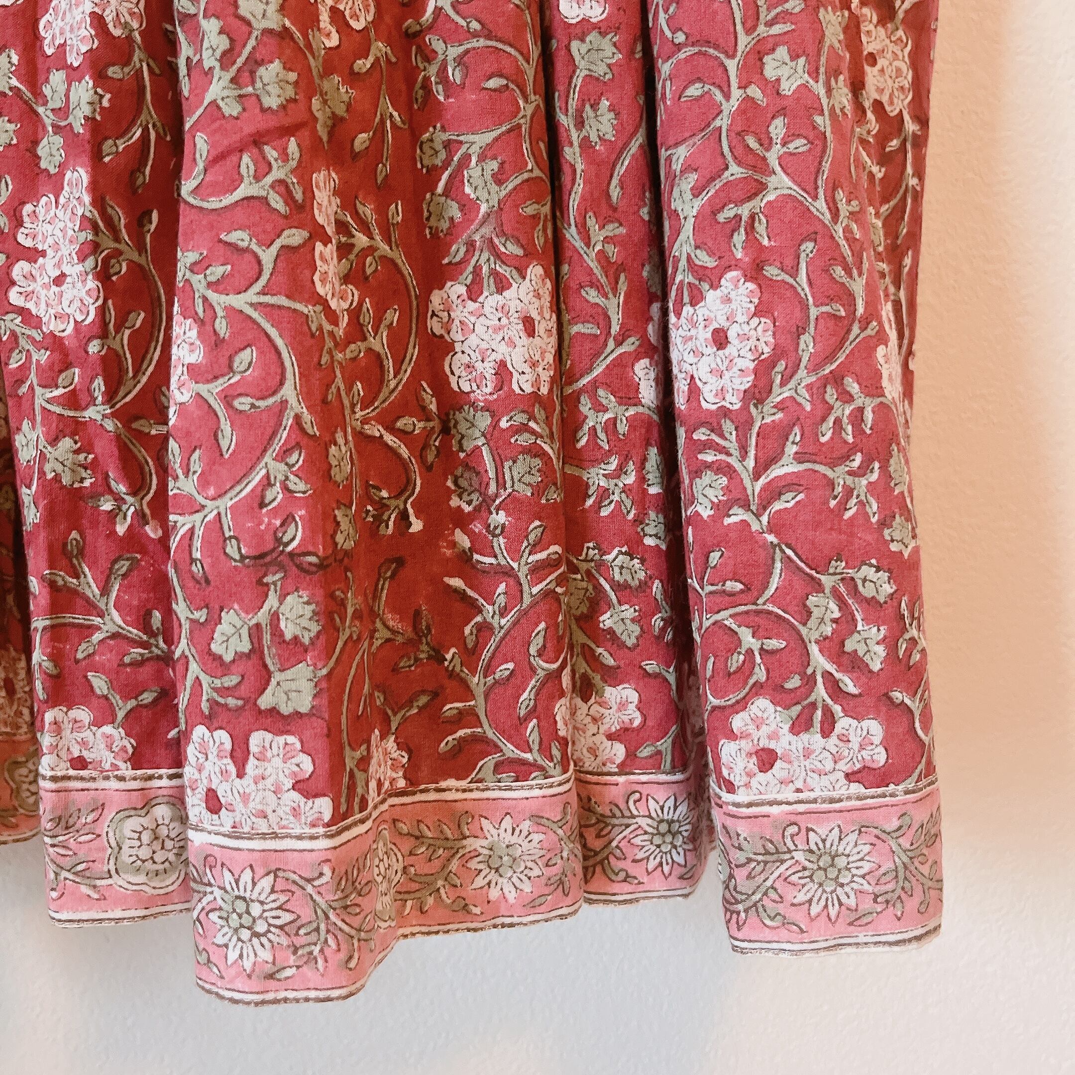 インド雑貨/インドの手仕事/インド好き/インド輸入/インドのワンピース/レッド/ブロックプリントワンピース/花柄/フラワープリント